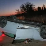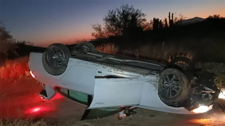 El vehículo BMW modelo 2016 quedó con los neumáticos hacia arriba y luces encendidas; no se encontró al conductor. ...