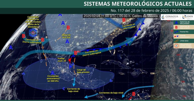 México.- 28 de febrero de 2025 Para hoy, el frente núm. 29 se extenderá con características de estacionario desde el...