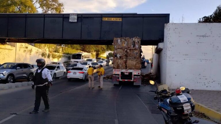 Culiacán, Sinaloa.- 1 de Abril de 2025 Un tráiler cargado con varias toneladas de cartón quedó atorado bajo el Puente Negro, provocando congestionamiento vial en la...