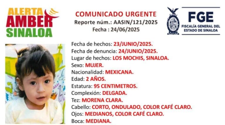 Los Mochis, Sinaloa.- 25 de Junio de 2025 La Fiscalía General del Estado de Sinaloa activó una Alerta Amber para...