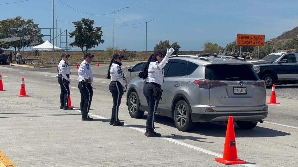 Los Mochis, Sin.– 2 de Abril de 2026 En este Jueves Santo, que marca el inicio del periodo de descanso en las familias ahomenses, se mantiene activo el operativo de seguridad y vigilancia Semana Santa Segura 2026 en el entronque que conduce hacia la playa de El Maviri.