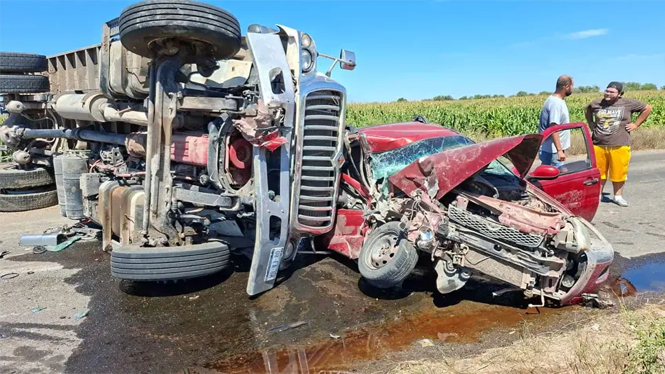 Fue en ese momento cuando se impactó de frente contra una camioneta Dodge Ram 700 de color rojo, que se desplazaba en sentido opuesto. Tras el impacto, ambas unidades avanzaron varios metros, quedando el camión volcado y la camioneta con severos daños.