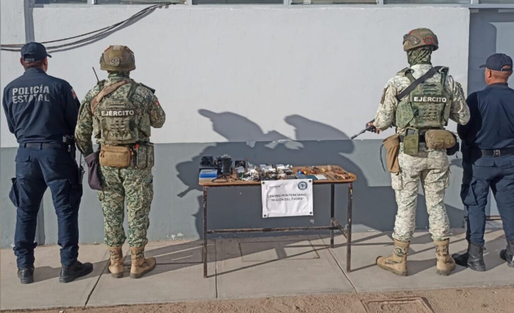 Guamúchil, Sinaloa.- 13 de Abril de 2026 Elementos de la Secretaría de Seguridad Pública de Sinaloa, a través del Grupo de Operaciones Especiales Sinaloa (GOES) de la Policía Estatal Preventiva, en coordinación con el Ejército Mexicano, la Guardia Nacional, la Secretaría de Marina, la Secretaría de Seguridad y Protección Ciudadana, la Fiscalía General de la República y la Fiscalía General del Estado, aseguraron diversos objetos no permitidos durante la implementación de una revisión del módulo varonil del Centro Penitenciario Región del Évora, ubicado en el municipio de Angostura.