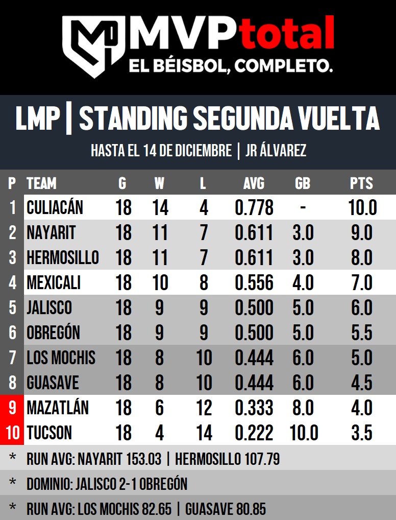 La explosión definitiva llegó en la quinta baja. Eric Filia abrió con sencillo y Nick Williams negoció pasaporte antes de que Yurisbel Gracial sacudiera cuadrangular de tres carreras para darle la vuelta al marcador. Rodolfo Amador siguió con jonrón solitario y el ataque no se detuvo: con las bases llenas, Isaac Rodríguez recibió pelotazo para producir carrera, Filia y Gracial negociaron pasaportes consecutivos y Los Mochis cerró un inning de siete anotaciones para despegarse 13-7.