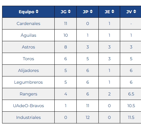 Cardenales de Tamazula sigue siendo uno de los rivales más duros de la campaña, pues con siete jornadas disputadas, registra un total de 11 victorias, un empate, sin derrota, siendo los líderes del circuito beisbolero.