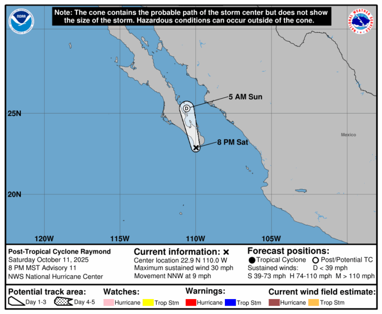 BOLETÍN Ciclón Pos-Tropical Raymond Advertencia Número 11 Centro Nacional de Huracanes del SNM Miami FL EP172025 800 PM MST sábado...