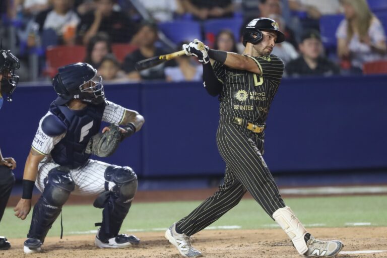 Chihuahua, Chih.- (Almer Soto - Prensa Dorados) 14 de mayo de 2025.- Rainel Rosario pegó cuadrangular en la octava entrada...