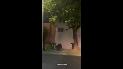 Monterrey.- 13 de Septiembre de 2025 Un oso y tres oseznos fueron vistos trepando un árbol de aproximadamente tres metros...