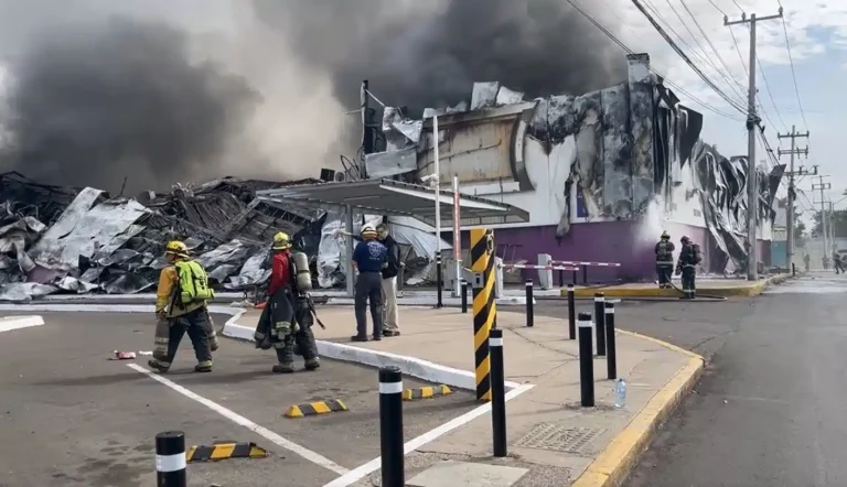 Culiacán, Sinaloa.- 16 de enero de 2025 Al tiempo que las llamas consumen el parque infantil Jump Trampoline Park ubicado...