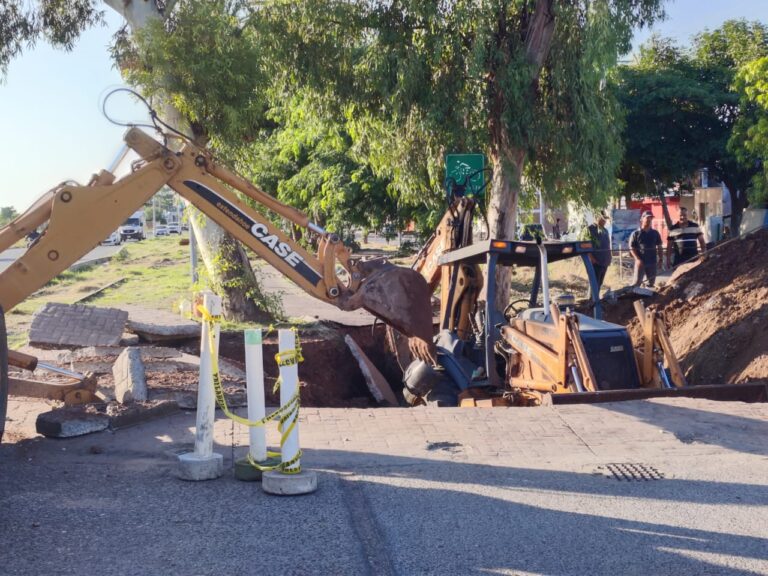 Los Mochis, Sinaloa. – 23 de Octubre de 2025 Una trascabo cayó sobre un nuevo socavón generado este jueves por...