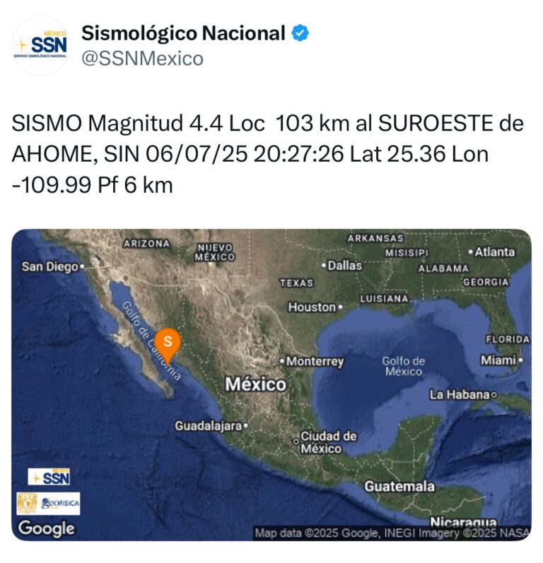 Los Mochis, Sinaloa.- 6 de Julio de 2025 El Servicio Sismológico Nacional (SSN) reportó la tarde de este sábado un...