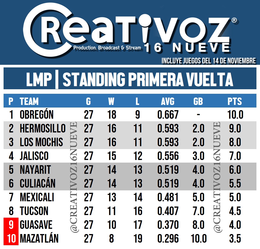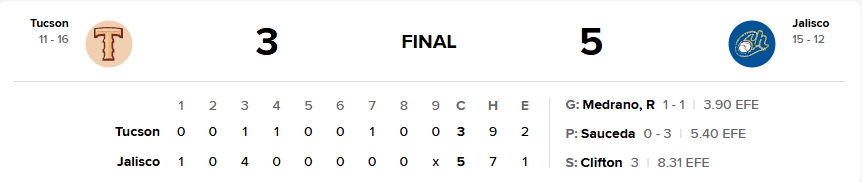 Posicionados en la cuarta posición, con este triunfo los Charros siguen al acecho de los primeros lugares en esta primera parte del calendario. Tucson, en cambio, se aleja de la media tabla y perdió terreno con los demás resultados.