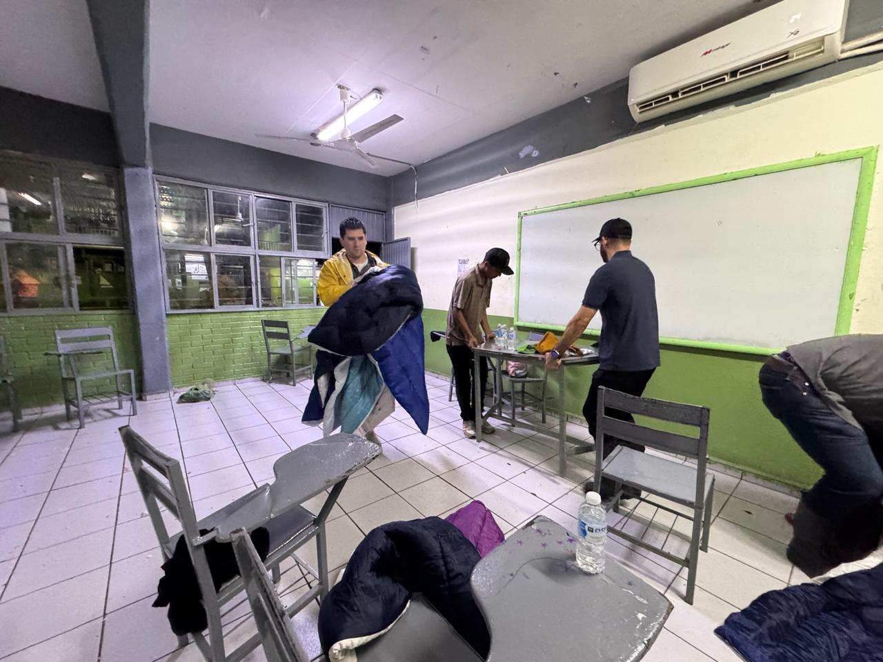Los Mochis, Sinaloa.- 12 de Octubre de 2025 El refugio temporal ubicado en las instalaciones del Cobaes 02 de Los Mochis fue habilitado este domingo por la tarde para atender a cinco familias habitantes de la invasión Malova que se vieron afectadas por las lluvias