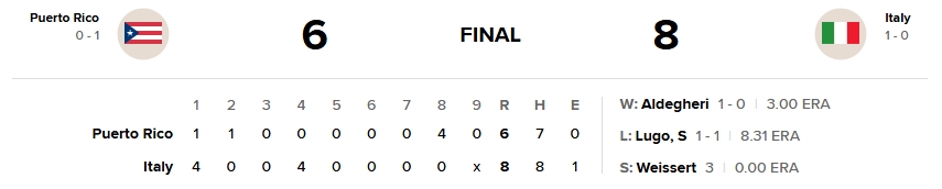 Sin embargo, la ofensiva boricua no pudo completar la remontada y el relevo italiano logró cerrar el encuentro.