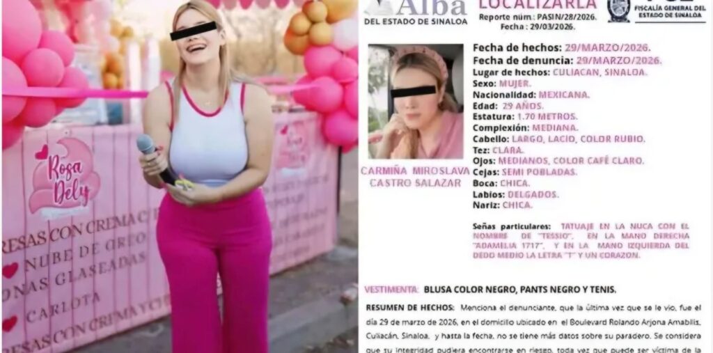 Culiacán, Sin.- 31 de Marzo de 2026  La joven repostera y creadora de contenido Carmiña Miroslava Castro Salazar, ya fue liberada con vida.