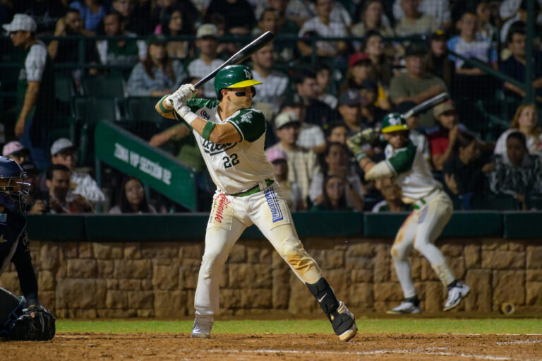 Los Mochis, Sinaloa (JR Álvarez | creativoz16nueve).- Alejandro Urías conectó batazo de cuatro esquinas por todo el izquierdo, estacazo decisivo...