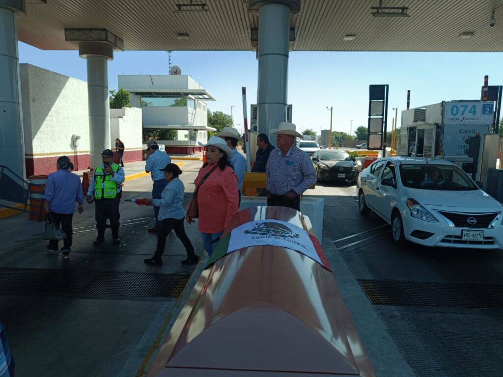 Guasave, Sin.- 10 de Noviembre de 2025 Tal y como lo habían advertido, productores agrícolas dieron el pase libre en la caseta de cobro de Cuatro Caminos al rededor de las 10:20 de la mañana, levantaron las plumas e impidieron el cobro a los automovilistas; cabe mencionar que minutos antes colocaron un ataúd como muestra de la muerte que está teniendo el campo.