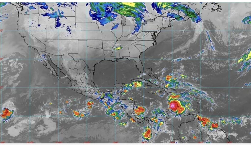 Mientras que en el Atlántico está próxima a formarse la tormenta tropical Melissa; se trata de una zona de baja presión al oeste de las Antillas Menores: