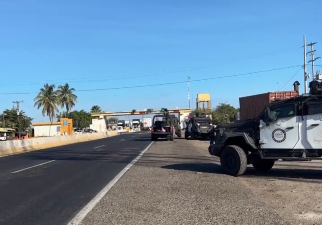 Angostura, Sinaloa.- 24 de Abril de 2026 Elementos de la Secretaría de Seguridad y Protección Ciudadana Federal, fueron atacados con poncha llantas al circular por la autopista Benito Juárez «La Costera», a la altura de la caseta de Alhuey, Angostura.