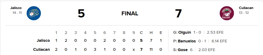 La novena guinda contó con una sólida labor del bullpen, que colgó ceros en el último tercio del juego, además de una ofensiva oportuna que respondió en los momentos clave. Con esta victoria, los Tomateros se colocan a solo un juego de Hermosillo y Jalisco, que comparten la tercera posición, mientras Jaguares continúa pisándoles los talones en el quinto sitio tras su triunfo de la noche.
